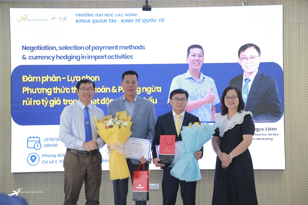 Sáng ngày 21/10/2025, tại phòng B203, cơ sở 1, Khoa Quản trị - Kinh tế Quốc tế đã tổ chức thành công chương trình “Đàm phán, lựa chọn Phương thức thanh toán và phòng ngừa rủi ro tỷ giá trong hoạt động nhập khẩu".