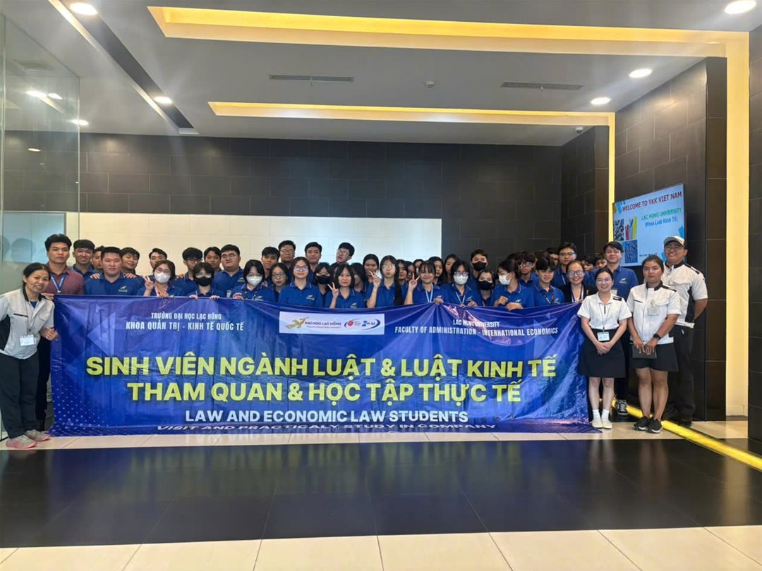 Ngày 06/11/2025, sinh viên lớp 24LA111 – Ngành Luật thuộc Khoa Quản trị Kinh tế Quốc tế, Trường Đại học Lạc Hồng đã có chuyến tham quan và học tập thực tế đầy ý nghĩa tại Công ty TNHH YKK Việt Nam – một trong những doanh nghiệp FDI tiêu biểu tại Đồng Nai. Chương trình do Thầy Võ Thái Sinh hướng dẫn và đồng hành.