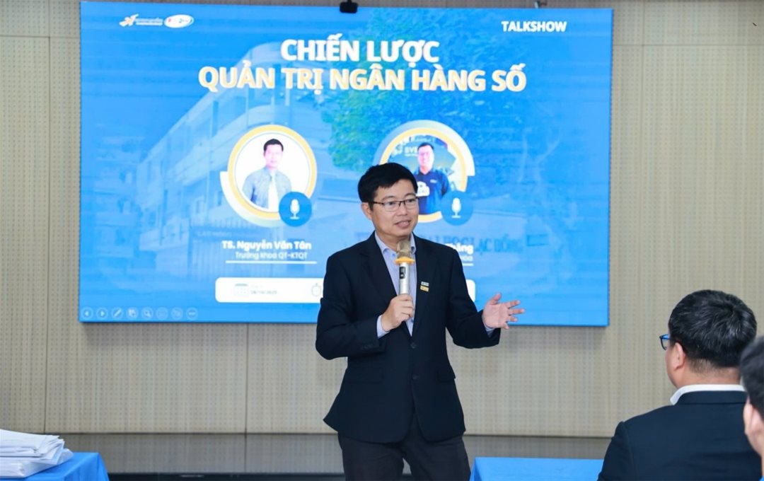 Trong bối cảnh công nghệ đang tái định hình mọi lĩnh vực, ngân hàng số không chỉ là xu hướng mà đã trở thành một cuộc cách mạng trong tư duy quản trị tài chính hiện đại. Nắm bắt tầm quan trọng đó, Khoa Quản trị – Kinh tế quốc tế, Trường Đại học Lạc Hồng đã tổ chức thành công buổi Talkshow với chủ đề “Chiến lược quản trị ngân hàng số”, mang đến cho sinh viên cơ hội quý giá để tiếp cận với những kiến thức thực tiễn nhất.