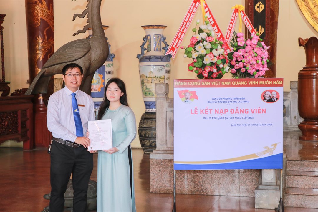 Hòa trong không khí phấn khởi chào mừng thành công của Đại hội đại biểu Đảng bộ tỉnh Đồng Nai lần thứ I, nhiệm kỳ 2025–2030, sáng ngày 01/10/2025, Đảng ủy Trường Đại học Lạc Hồng phối hợp cùng Chi bộ 4, Chi bộ 7 và Chi bộ 8 long trọng tổ chức Lễ kết nạp bốn đoàn viên sinh viên ưu tú vào Đảng Cộng sản Việt Nam tại Khu Di tích Quốc gia Văn Miếu Trấn Biên.