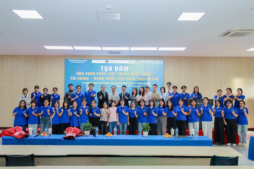 On the afternoon of December 20, 2025, at Hall A301 – Campus 1, Lac Hong University, the Faculty of Finance and Accounting successfully organized a seminar entitled “Application of Law in Financial and Banking Activities: An Expert Perspective.” The event attracted the participation of numerous lecturers, students majoring in Finance and Banking, and invited professional guests.