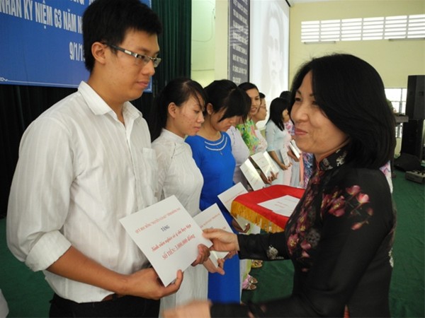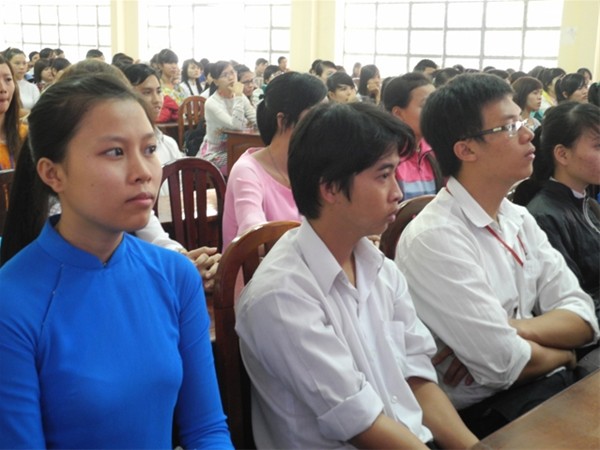 At the ceremony, Nguyen Van Ky’s wife Le Thi Tru had a talk with students of Lac Hong and Dong Nai. She reviewed glorious traditions of our ancestors for students and reminded them of living well to be able to contribute to the development of the country.