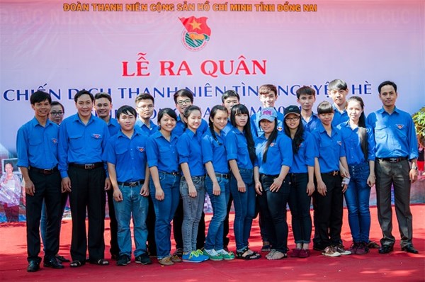 Comrade Bui Xuan Thong - Secretary of Dong Nai provincial Youth Union took a souvenir photo with Lac Hong Youth Union members.