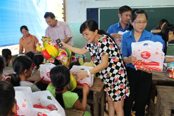Vice Secretary of Dong Nai provincial Youth Union Bui Thi Bich Thuy gave Mid-Autumn gifts to poor children.