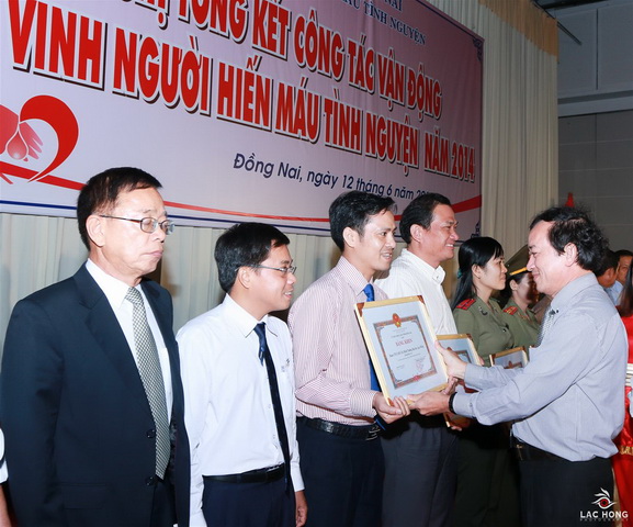 At the ceremony, Dong Nai provincial Mobilization Board for Voluntary Blood Donation made a summary report on 2014 blood donation campaigns and then praised outstanding individuals and organizations for their achievements in voluntary blood donation programs.