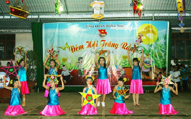 The same day, LHU delegation attended "Full moon 2015" for children with difficult circumstances, held at Ngo Quyen Secondary School, Song Ray commune in Cam My district. At the program, the participants enjoyed special performances, Chu Cuoi - Chi Hang lively scenes, lion dances, lantern parade,... Here, more than 600 children were presented moon cakes, lanterns, candies,...