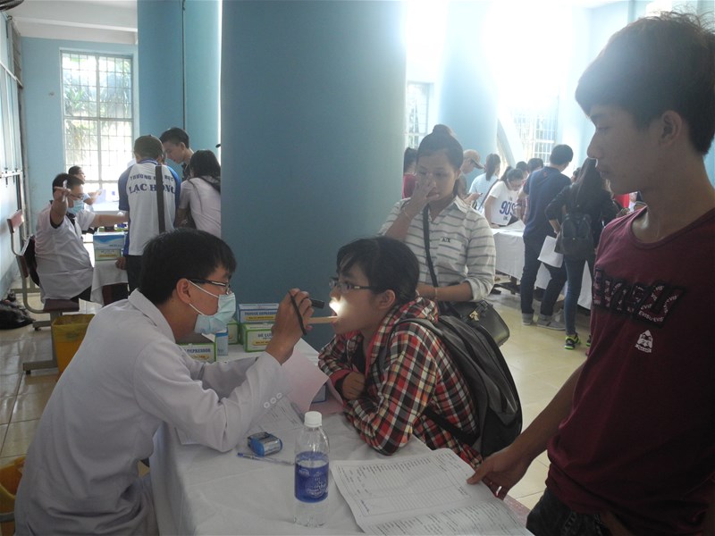Implementing the Regulation No. 17/2007/QD - BGDDT dated on May 24, 2007 signed by the Ministry of Education and Training on organization and action of Medical State in universities, colleges, institutes, technical secondary schools, LHU carried out free-health check program offered to its newly entering students on November 1, 8 and 15 at the third campus. The medical check-up was cooperated by the University and Dong Nai Medicine College. Medical staff were qualified and experienced in taking care of school health.