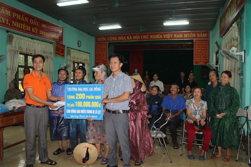 From Oct, 31 to Nov 4, representatives of Lac Hong University directly handed over 200 gifts worth VND 100 million to flood-affected people in Hong Thuy, Thanh Thuy, Xuan Thuy communes of Le Thuy district, Quang Binh province.