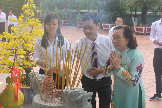 LHU delegation burnt incense worship predecessors at Tran Bien Temple of Literature.