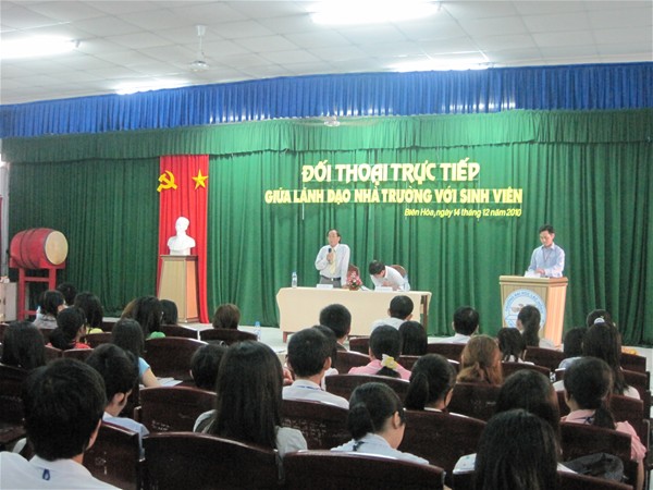 Attending the meeting were Dr. Tran Hanh - Rector and Lam Thanh Hien, M.A - Vice Rector of the school directly answering students’ questions . At the hall, there were also leaders of departments, faculties and centers who were responsible for questions regarding their fields. In addition, Dong Nai Newspapers, Dong Nai Radio and Television Station and almost 400 students as secretaries, heads of branches and civil affairs committees attended the meeting.