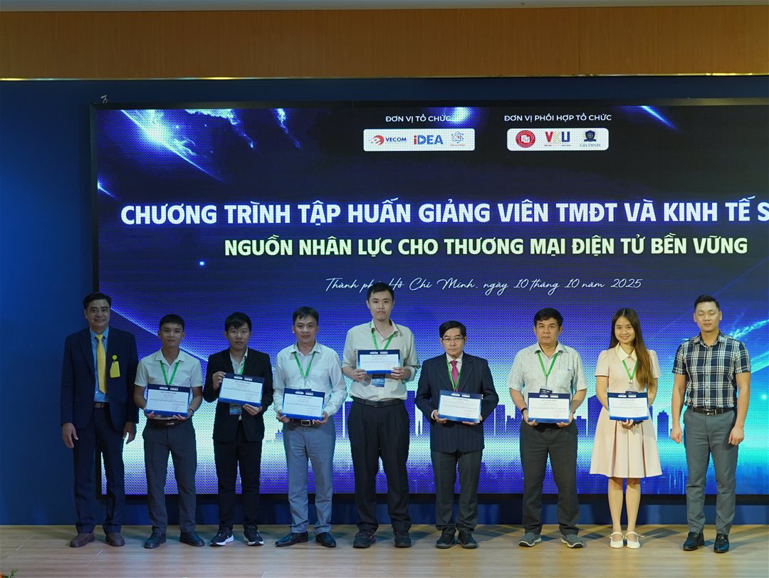 On October 10, 2025, three lecturers representing the E-commerce major from the Faculty of Information Technology at Lac Hong University (LHU) attended the "E-commerce & Digital Economy Lecturer Training Program 2025." The event was co-organized by the Vietnam E-commerce Association (VECOM) and Gia Dinh University (GDU) in Ho Chi Minh City.