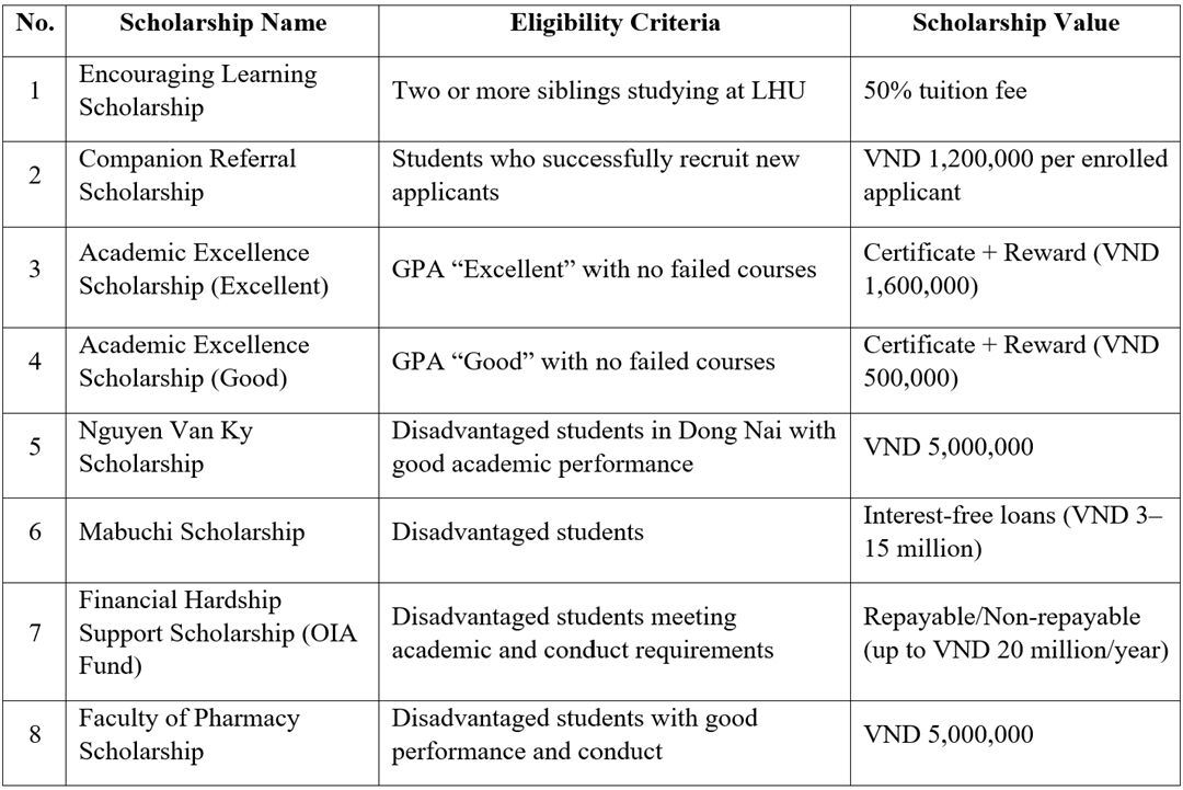 Scholarship policy for pharmacy students – lac hong university